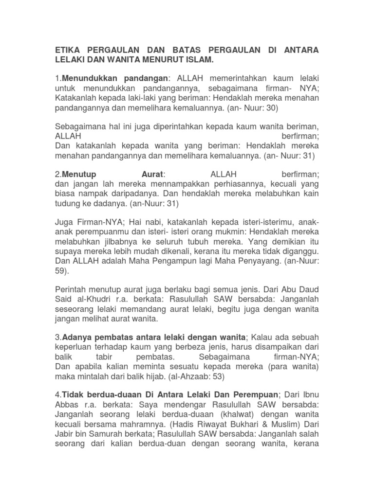 Etika Pergaulan Dan Batas Pergaulan Di Antara Lelaki Dan Wanita Menurut Islam Pdf